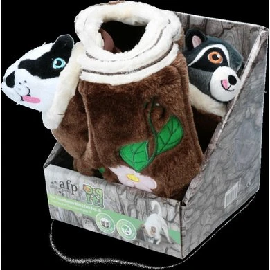 Laat een hond op onderzoek uitgaan en ontdekken wat de boomstam te bieden heeft, zoals krakende geluidjes en 2 schattige speeltjes met een pieper aan de binnenkant. :