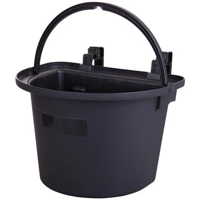 Handige voerbak en emmer in één. De voerbak is vervaardigd van een hoogwaardige kwaliteit polypropyleen en heeft een rechte achterzijde met extra sterke, afneembare nylon haken. Het materiaal is corrosiebestendig en buigt niet door. Het hengsel, geschikt voor zwaar werk, wordt verborgen in de rand van de voerbak, zodat het paard hier niet door gehinderd wordt tijdens het eten. Het hengsel blijft op de plaats door het ‘clip down systeem’. Afmetingen: 39.5 x 31.5 x 26.5 cm (b x d x h), diepte is 35 cm inclusief haken.