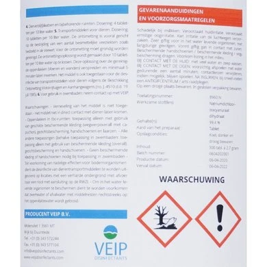 Actisan-5L bestaat vrijwel uitsluitend uit werkzame stof. Deze werkzame stof is zeer stabiel en geeft daardoor zeer voorspelbare en betrouwbare desinfectie resultaten. Het desinfectiemiddel gaat een chemische reactie (oxidatie, feitelijk een verbrandingsreactie) aan met micro-organismen. Resistentie vorming is daardoor niet mogelijk. Door de tabletvorm voor 5 liter water is Actisan-5L zeer gemakkelijk en nauwkeurig te doseren. Door de vrijwel neutrale pH-waarde mist Actisan-5L de agressiviteit van bijvoorbeeld natriumhypochloriet (chloorbleekloog). Bovendien geeft Actisan-5L zowel bij lage als hoge PH-waarden goede desinfectie resultaten. Actisan-5L lost gemakkelijk op in water (maximale concentratie 20% bij 15°C). Voor een nauwkeurige dosering kunt u de oplossingstabel inzien Tabel Actisan 5L. Gebruik biociden veilig. Lees vóór gebruik eerst het etiket en de productinformatie.