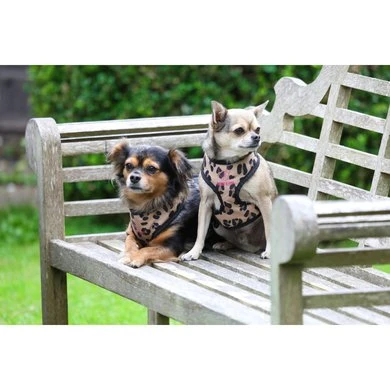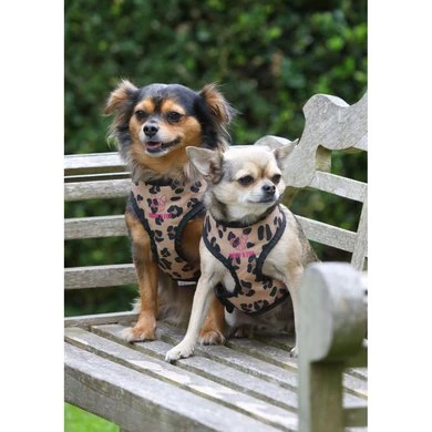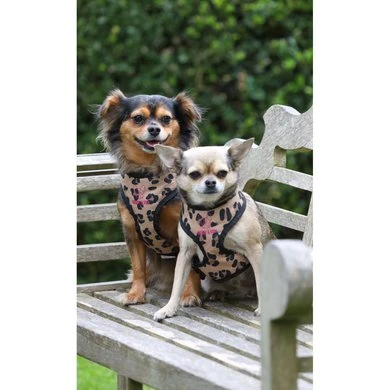 Dit eigentijdse harnas met dierenprint houdt uw hond comfortabel en stijlvol. Het harnas is gemakkelijk te gebruiken en past over het hoofd en wordt rond de borst vastgemaakt met een handige gesp aan de zijkant. Slijtvaste buitenstof, ademende mesh voering, gespsluiting aan de zijkant, Digby & Fox details.