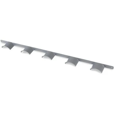 Aan de muur hangend geplastificeerd rek voor vijf hoofdstellen. Totale lengte: 101cm.