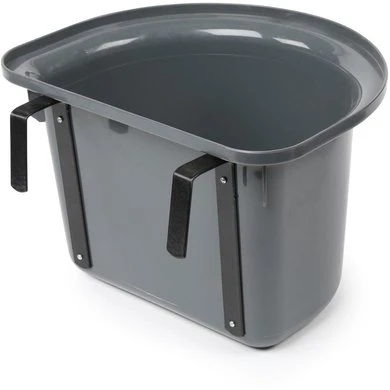 Gemaakt van sterk vorstbestendig polyethyleen met metalen haakbevestigingen om de voerbak over een staldeur of veldhek te hangen.