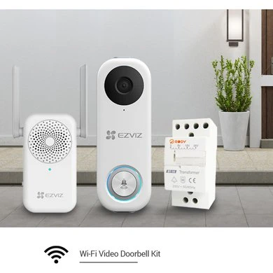 De DB1C-kit wordt geleverd met een wifi-videodeurbel, een belspeaker en een standaard transformator in het pakket. Samen bieden zij u een complete set oplossingen om uw huis beter te beveiligen