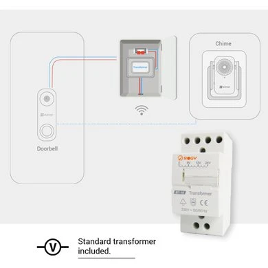 Deze standaard transformator zet de 230 VAC ingangsspanning om in een soepele 8, 12 of 24 VAC geregelde uitgangsspanning en zorgt voor een constante stroomvoorziening, zodat uw DB1C-deurbel correct en veilig werkt