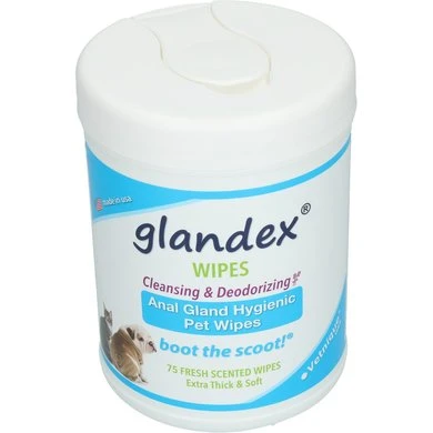Glandex Pet Wipes zijn speciaal ontwikkeld om te helpen bij het reinigen en schoonhouden van het achterwerk van honden en katten. De doekjes zijn ideaal voor dierenartsen, trimmers en voor huisdiereigenaren. In tegenstelling tot andere doekjes zijn de Glandex Pet Wipes zacht genoeg voor dagelijks gebruik, maar wel effectief tegen vuil en ongewenste geurtjes.