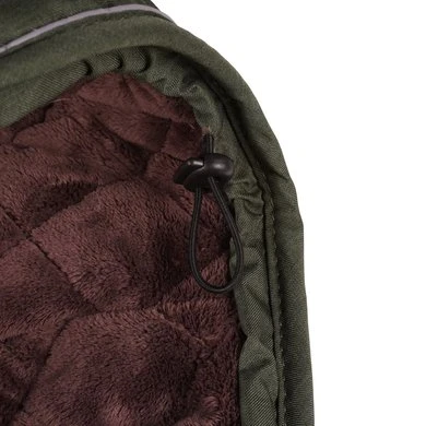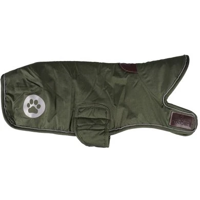 Dit fantastische waterdichte hondendeken biedt elke hond een droog, warm deken tijdens de koude, natte winterdagen. Het deken is 300gr gevuld en heeft een voering gemaakt van artificieel konijnenvacht voor extra comfort. De voering creëert kleine luchtzakjes die de lichaamswarmte van je hond vasthoudt. De artificiële konijnenvacht doet de hondenvacht glanzen en het artificiële wol ter hoogte van de nek biedt warmte en comfort en kan worden opengevouwen voor extra bescherming. Onder deze kap, onder een artificieel lederen lapje, is een klein gaatje waar de leiband doorheen kan.