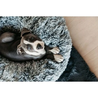Ons “Comfort Donut” hondenbed is speciaal ontworpen om uw hond te helpen ontspannen en rustiger te slapen. Dankzij de donutvorm en de comfortabele fake fur voelt uw hond zich veilig, zoals in een nest, wat een positief effect heeft op zijn ontspanning.