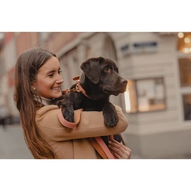 Het veganistische leer is extreem zacht en zeer soepel. Dankzij zijn zachtheid is het materiaal perfect voor honden die gevoelig zijn voor schuurplekken. Het lichte vegan leer is zeer comfortabel om te dragen. De hardware op de hondenhalsband is van verguld.