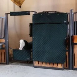 De Kentucky Horsewear hoofdbeschermer is de ideale bescherming voor het hoofd van je paard op stal. Deze hoofdbeschermer wordt bevestigd aan de bovenste buis boven je deur en wordt vastgemaakt met behulp van vijf sterke klittenbandsluitingen.De hoofbeschermer is gemaakt van 600D high tenacity polyester en heeft een stijlvolle look dankzij het diamond quilting patroon, de bruine artificiële lederen bies en het Kentucky logo in artificieel leder. Deze hoofdbeschermer is een perfecte match met ons stalgordijn en onze stalpoort. Deze hoofbeschermer is machine wasbaar op 30°, geen droger.