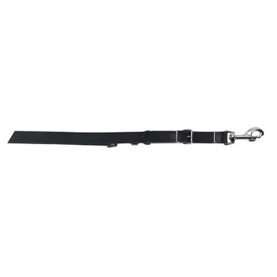 240 cm lang/ 22 mm breed met aan de ene zijde een vaste musketon en aan de andere zijde een door middel van een gesp afneembare musketon en diverse ringen voor het vastleggen van de hond.
