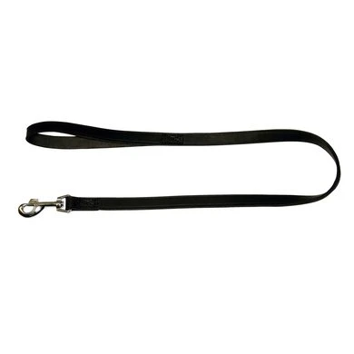 Deze hondenlijn is uitgevoerd in zwart of bruin leer.