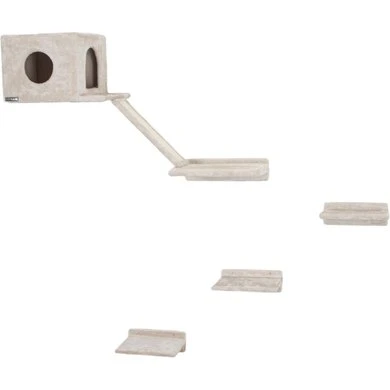 • voor bevestiging aan de muur • bestaande uit 6 delen • 3 treeplanken 29,5 x 22,5 cm • 1 gewatteerde ligplank 40,5 x 31 cm • 1 helling met sisal hoes 44 x 14 cm • 1 grot 37 x 37 x 30 cm • veerkrachtig tot 10 kg