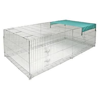 Deze uitloop beschermt uw knaagdier van mogelijk roofdieren. De uitloop heeft een doek ter bescherming van de zon, en vier deuren aan de zijkant. Bovendien is de uitloop makkelijk op te bouwen door middel van aardpennen.
