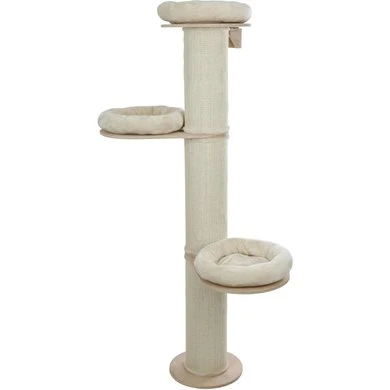 • stevige schraapzuil ø 22 cm • om aan de muur te bevestigen voor meer stabiliteit • hoogte: 187 cm • pluche kussen ø 46 cm met klittenband, verwijderbaar • kussen wasbaar op 30 ° C • voetplaat ø 38 cm met kunststof voetjes • sisaltapijt vastgelijmd aan de kolommen
