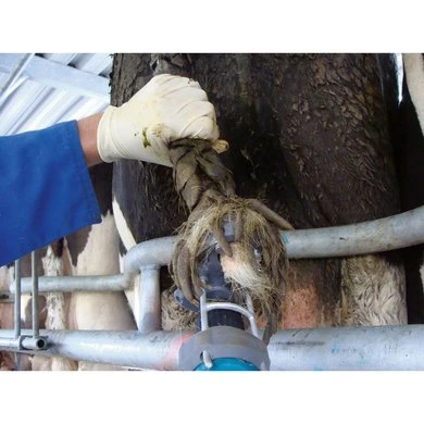 • Nog onderhoudsvriendelijker Ontwikkeld om het lastige werk van het knippen van de haren van de koeienstaart bij melkkoeien te vergemakkelijken. Het verwijderen van de haren van de koeienstaart die met drek en urine gecontamineerd zijn, is belangrijk voor een optimale hygiëne van het veebestand, de melk en de melker. Voor een optimale melkkwaliteit moeten de koeienstaartharen twee keer per jaar geschoren worden. TailWell® Power Tail Trimmer past in elke accuschroevendraaier (min. 14 volt) met ca. 1.250 tpm. TailWell2® Power Tail Trimmer werkt stil en zorgt voor een glad resultaat. Het duurt slechts max. 4 seconden per staart en kan eenvoudig tijdens het melken uitgevoerd worden. Het principe is dat een lemmet aan de buitenkant rond een aan de binnenkant roteert, waardoor er geen letselgevaar voor dier of mens bestaat. Regelmatige smering, zoals bij elk scheerapparaat, is belangrijk en moet tussen elke 30e tot maximaal 50e scheerbeurt gebeuren. De haren vooraf knippen is zelfs bij sterke vervuiling resp. klitten niet nodig. Per acculading moeten, afhankelijk van de mate van vervuiling 100 tot 200 staarten, geschoren kunnen worden. De messen achteraf slijpen is afhankelijk van de mate van vervuiling (na 1000 tot 2000 scheerbeurten) noodzakelijk en kan met de meegeleverde schuurpasta eenvoudig en probleemloos ook door niet bedreven gebruikers worden uitgevoerd Accuschroevendraaier niet bij levering inbegrepen! Overige eigenschappen: