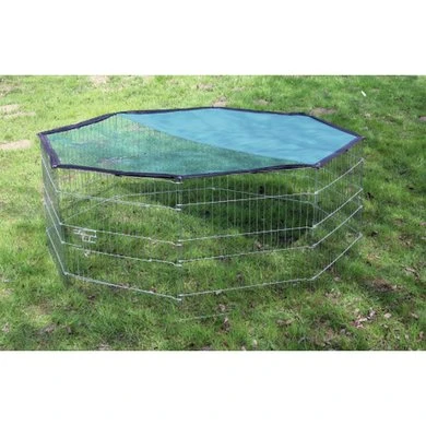 Achthoekige, verzinkte uitloop voor konijnen. Geleverd inclusief net met gedeeltelijke zonbescherming. Met deur. Afmetingen elementen: 57×57 cmEenvoudige montage met aardpennen.