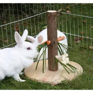 Voerboom voor knaagdieren. Deze voerboom kan met van alles gevuld worden, als wortel, appel, gras enz.