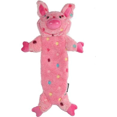 Deze knuffel heeft een lang en plat lichaam, zodat er extra hard mee geschud kan worden. Bevat een pieper en knisperfolie voor nog meer speelplezier. Extra gestikt voor een langere levensduur van deze knuffel.