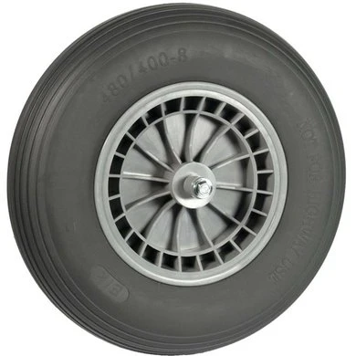 Standaard kruiwagen softwiel 400×8 met kunststof velg en grijze foamband.