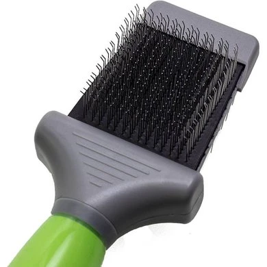 • Gebruik de zwarte borstelkant voor het verwijderen van losse haren, vuil en klitten in lang haar. De grijze borstelkant is ideaal voor kort haar of voor de fijne vacht bij gezicht en pootjes.