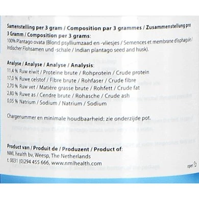 Samenstelling: 100% Plantago Ovata, combinatie van psylliumzaad én – vliesjes.