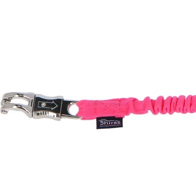 Deze vastzetlijn is ideaal voor de stal of trailer. Voorzien van draaibare musketon en paniekontgrendelklem. Totale lengte: 69 cm.