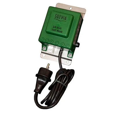 Transformator geschikt voor de voeding van de verwarmingselementen en eventuele 24 volts verwarmingskabel.