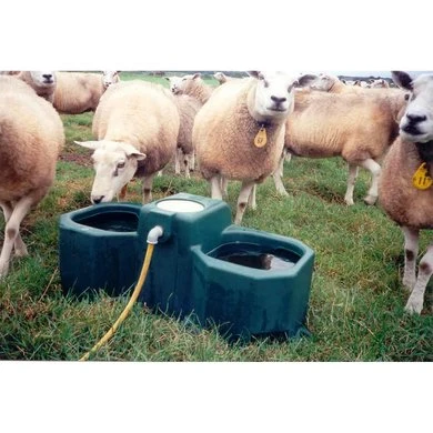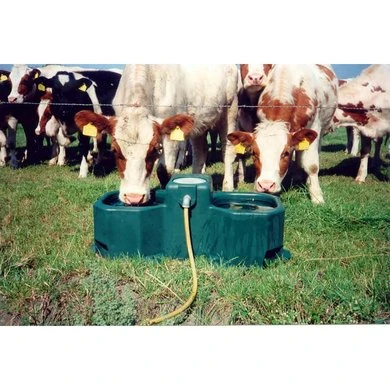 Weidedrinkbak met vlotter M odel WT 80 • Vlotterdrinkbak uit hoogwaardig UV-bestendig polyethyleen met 2 drinkplaatsen, inhoud 80 liter • Vier bevestigingsgaten voor vloer- of sokkelbevestiging • Met ingebouwde hoogwaardige vlotter, aansluiting ½inch aan de achterzijde van de drinkbak, aan de boven- of onderzijde mogelijk • Hoge waterafgifte tot 25 l/min • Vlotter door servicedeksel gemakkelijk bereikbaar • Geen waterverspilling door naar binnen gebogen rand • Met grote afvoerstop voor snel en eenvoudig ledigen • Ook met Lage druk vlotter voor max. 1 bar waterdruk leverbaar, aansluiting inch bi.dr (art.-nr. 160.0106) Geschikt voor: Rundvee, koeien, paarden, schapen en geiten