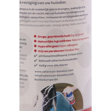 Vetericyn FoamCare® Medicated Shampoo is een Spray-On, direct schuimende shampoo die is samengesteld om de huid van uw dier te reinigen, te kalmeren en te herstellen van veelvoorkomende huidaandoeningen. Het behandelt en verlicht jeuk, droge huid en is effectief bij diverse huidproblemen. Tevens verbetert Vetericyn FoamCare ® Medicated Shampoo het natuurlijke immuunsysteem van uw huisdier tegen toekomstige huidproblemen.